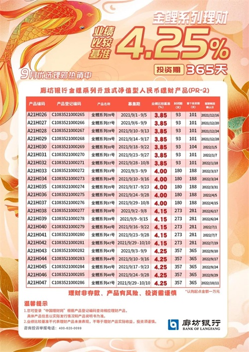 廊坊银行金鲤系列开放式净值型理财