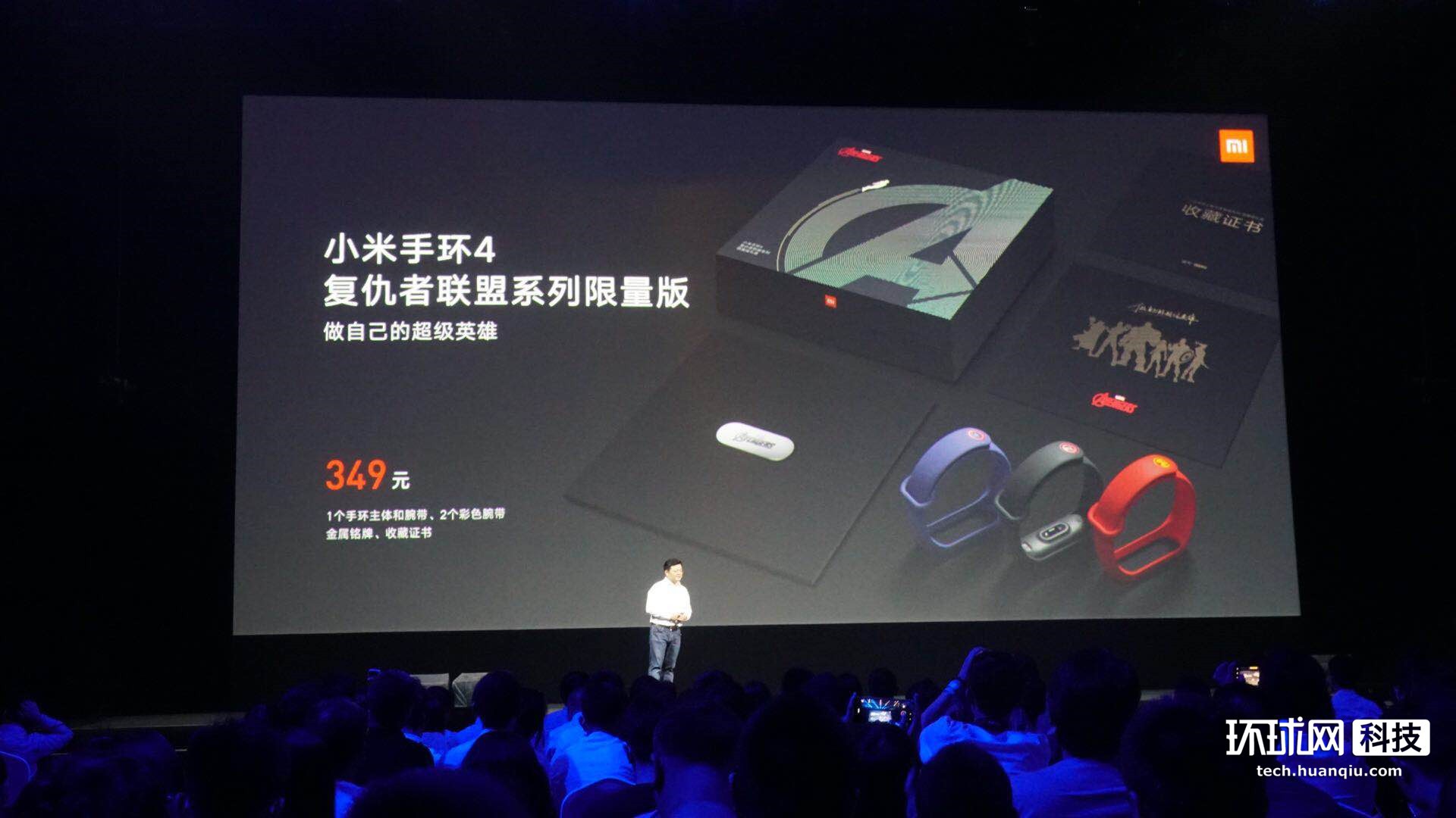 【环球网科技现场报道】经过雷军前几日在微博平台的预热,6月11日,小米手环4终于发布,在增加多项功能的情况下,起售价保持和3代相同,标准版售价169元,NFC版售价229元,复仇者联盟系列限量版售价349元。