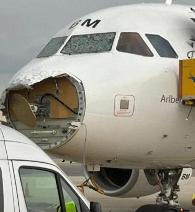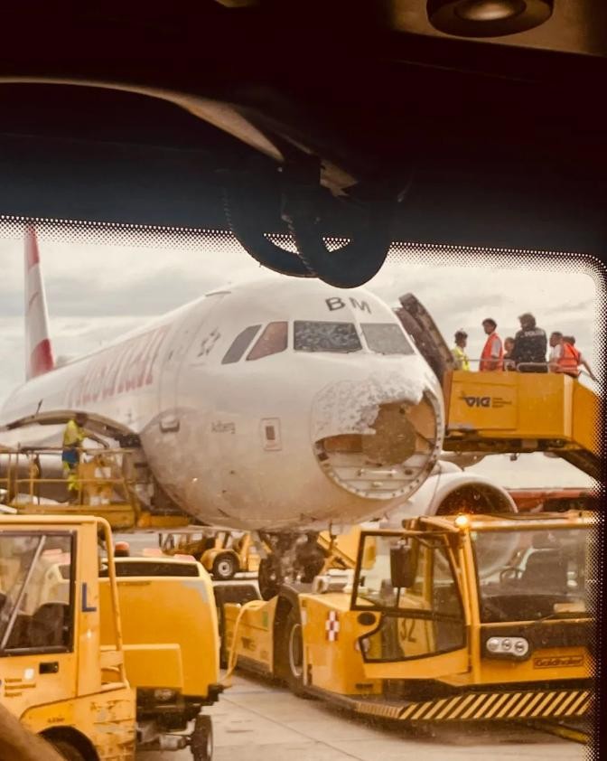 一架从马略卡岛帕尔马飞往维也纳的奥地利航空A320客机,在飞行途中遭遇了一场突如其来的雷暴天气。飞机飞行高度约6000米,当时正处于哈特贝格上空。据悉,飞机的机鼻和驾驶舱玻璃遭到了严重的雹击损坏。