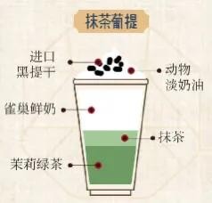 这是淡奶中偏茶味儿的一款奶茶。它是由雀巢纯牛奶和抹茶、茉莉绿茶经过细心的工艺调配而成,上面有一层新西兰进口的淡奶和少许抹茶与黑加仑,口感独特,淡淡的奶香中藏着一缕抹茶的香味,细腻柔滑,回味绵绵不断。是偏爱抹茶味人士的首选。