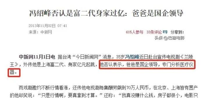 关于冯绍峰的家庭背景,一直存在各种传闻。
