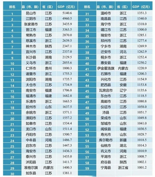 从百强县前20名可以看出,江苏省,浙江省,山东省,福建省依然是比较强劲的,跟人们的预期基本一样,都是经济大省,都是经济强省,无论是经济发展,还是综合实力都让人羡慕。