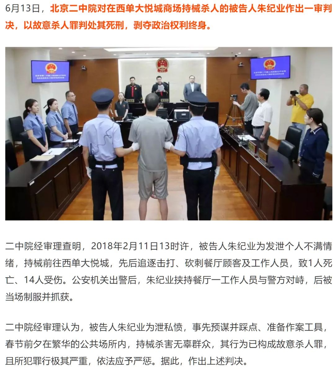 【热点聚焦】死刑!“西单大悦城”命案一审宣判:事先预谋,持械杀害无辜群众