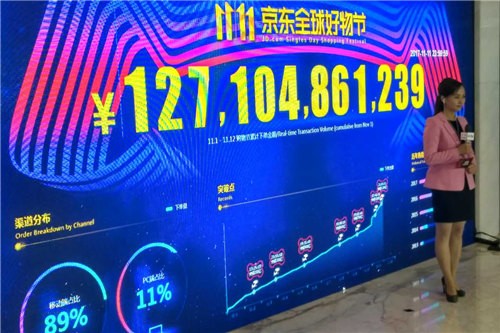 大河报 大河客户端北京讯 双11结束,截止11月12日0点,今年京东双11创造了从11月1日到11日共计1271亿销售的新纪录。这其中,移动端用户占到了89%,销售额也在11月11日21时即打破今年618累计18天的下单总额。