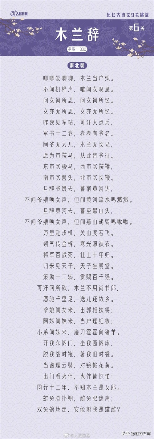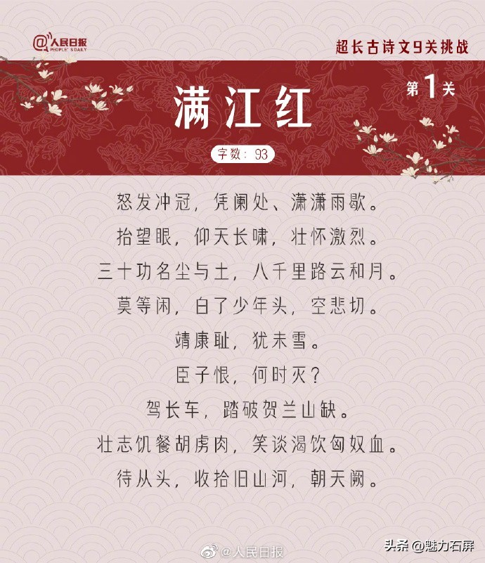 这个春节假期,岳飞庙、剑门关等景区推出“背诵古诗文免费游景区”等活动,不少游客下场挑战。294字的《蜀道难》,330字的《木兰辞》,616字的《琵琶行》。网友:儿时总有些意想不到的高光时刻,比如你曾全文背诵过717字的滕王阁序!9首古诗文↓快挑战!