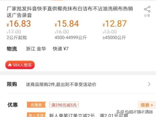 抖音快手西瓜上卖椰壳抹布现象是骗局吗?
