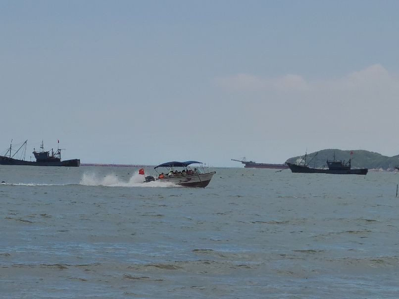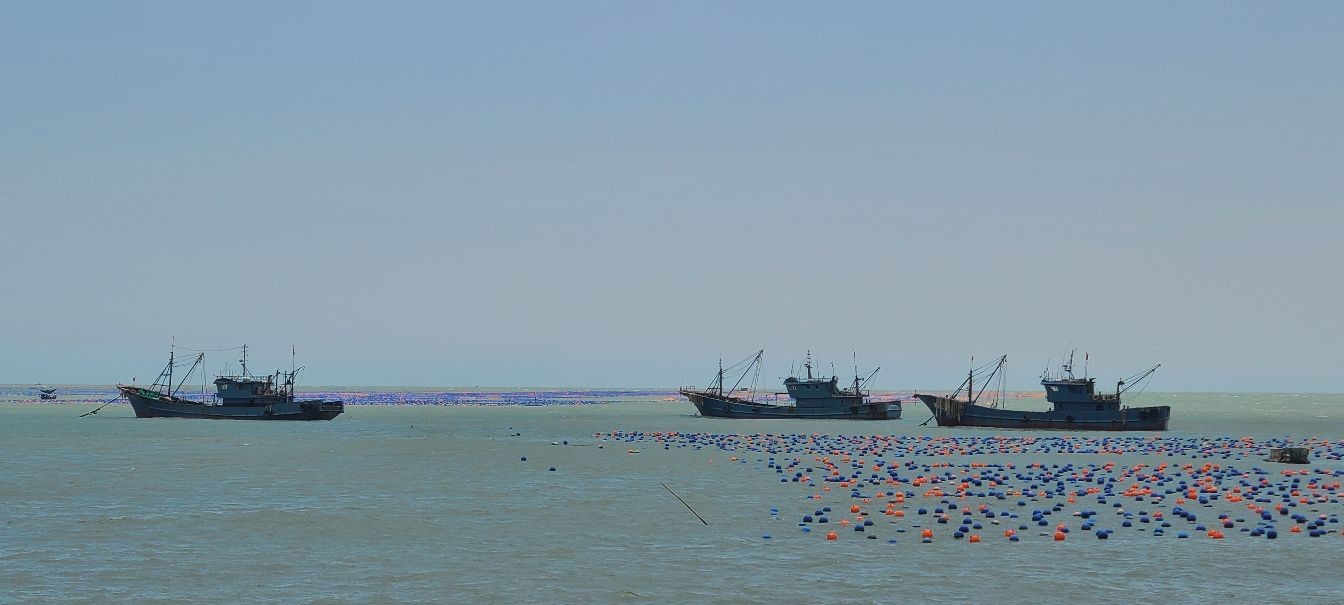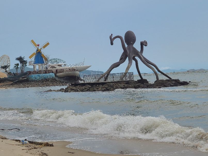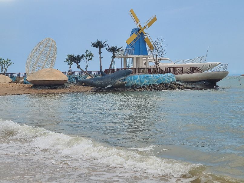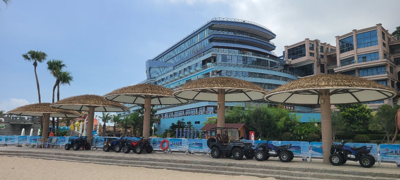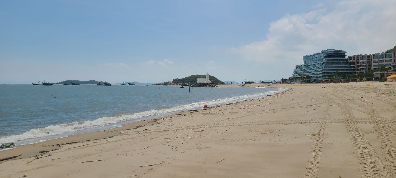 这里有着蜿蜒2000多米的沙滩海岸线,站在细柔的白沙滩上向海面望去,由远及近停锚着许多大大小小的船只,一排排、一片片五颜六色的养殖浮漂将海面点缀的色彩斑斓,不时有快艇穿梭期间掀起浪花朵朵。海上除了快艇、观光船之外还有其他的水上运动项目,沙滩上也有越野车、骑马等娱乐项目,这些活动又会有不同的感受体验,现在由于防控疫情的原因都没有开放,相信下次将来会更好。