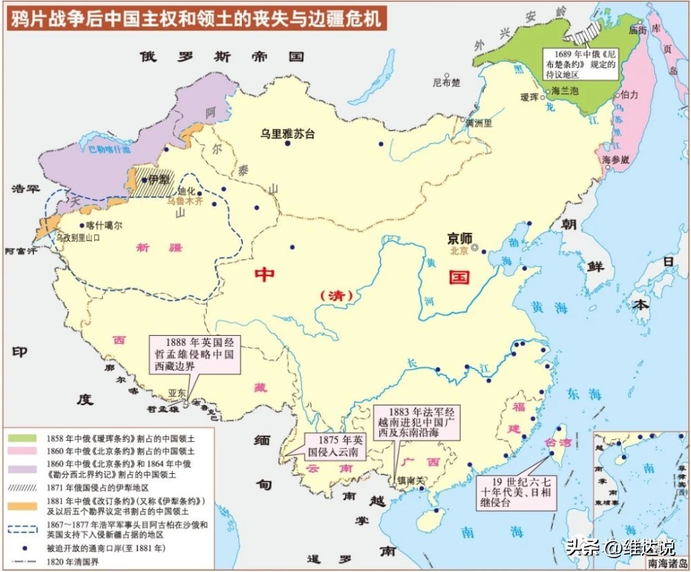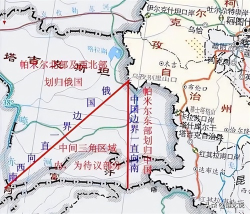 之后1881年沙俄又假惺惺的与清廷签订了《中俄伊犁条约》,规定:中俄两国在帕米尔的边界线“照两国现管之界勘定”。但在1884年勘界并签订《中俄续勘喀什噶尔界约》时,又无视之前条约中规定的帕米尔高原属于中国的条款,擅自把帕米尔地区的分界线起点从帕米尔北部的阿赖山移到了东北部的乌孜别里山口,侵占了帕米尔西北部大片领土,并设定了一块“三角形”的待议区。