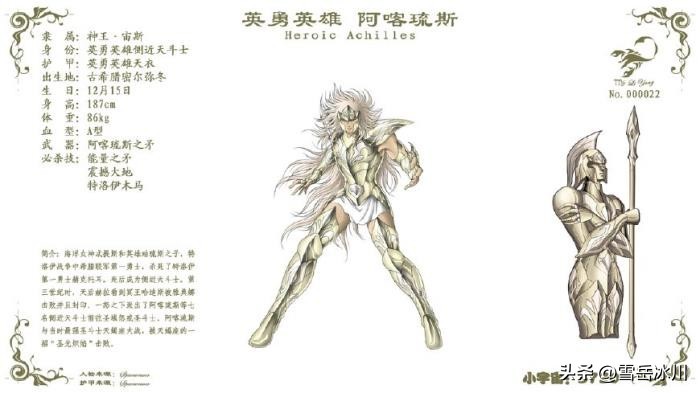 阿喀琉斯的战力数值为3770,是圣域与冥界的第五届圣战后、奉神后赫拉之命去制裁圣域的七位天斗士之一。很不幸对位遇上了从圣战中存活、也是当时最强的黄金圣斗士-天蝎座,虽然开局占了一些便宜,但由于二次定律、再加上之后天蝎座临阵突破觉醒了第九感-阿摩罗识,使出大招-圣光炽焰成功地将阿喀琉斯彻底击倒、不过重伤的他被天斗士-珀尔修斯带走了,并未丧命;和法厄同不同的是,阿喀琉斯大度地表示输的心服口服。