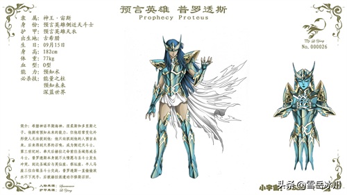 普罗透斯的实力数值为3950,是圣域与冥界的第五届圣战后、奉神后赫拉之命去制裁圣域的七位天斗士之一。由于其能看透短期的未来,所以预判到此战进行到一半就会被召回,并且其本人也无意于争斗,因此挑选了英仙座、祭坛座和半人马座三名新任白银作为对手(前任均已在圣战中牺牲),毕竟圣域经过与冥界的圣战后,能继承黄金圣衣的人选确实也没了,尽管三位白银拼尽了全力,祭坛座也确实制造了一些麻烦,但普罗透斯却始终放水,只用了两成实力都不到。最终在双方无伤的情况下、其被珀尔修斯召回。