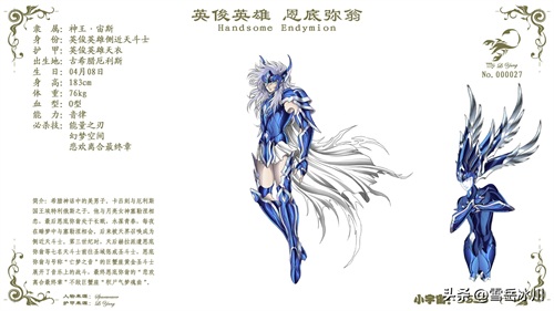 恩底弥翁的战力数值与阿喀琉斯相差无几,3780左右;是圣域与冥界的第五届圣战后、奉神后赫拉之命去制裁圣域的七位天斗士之一。对位遇上了圣域的新任巨蟹座,据说当时双方都是玩音律的,巨蟹座用雅典娜御赐的古筝来配合积尸气。虽然恩底弥翁完全占据了上风,好几次都可以夺取巨蟹座的性命,但感觉实在是知音难觅就想这么陪他玩下去,不料此时白银-天琴座和其表兄、从北欧赶来助拳的神斗士-摇光星突然加入战局,恩底弥翁终于不敌对方三人联手的三重奏、乐器被毁只能败走,而受重伤的巨蟹座之后也毁了御赐古筝,表示从此世上再无知音,可见两人也是惺惺相惜。