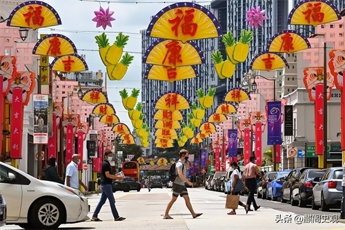 新加坡的春节,和中国的春节大同小异,每当临近年关,新加坡人都会准备年货,他们的唐人街和中国人过新年的场景是一样,到处都充满了红色。