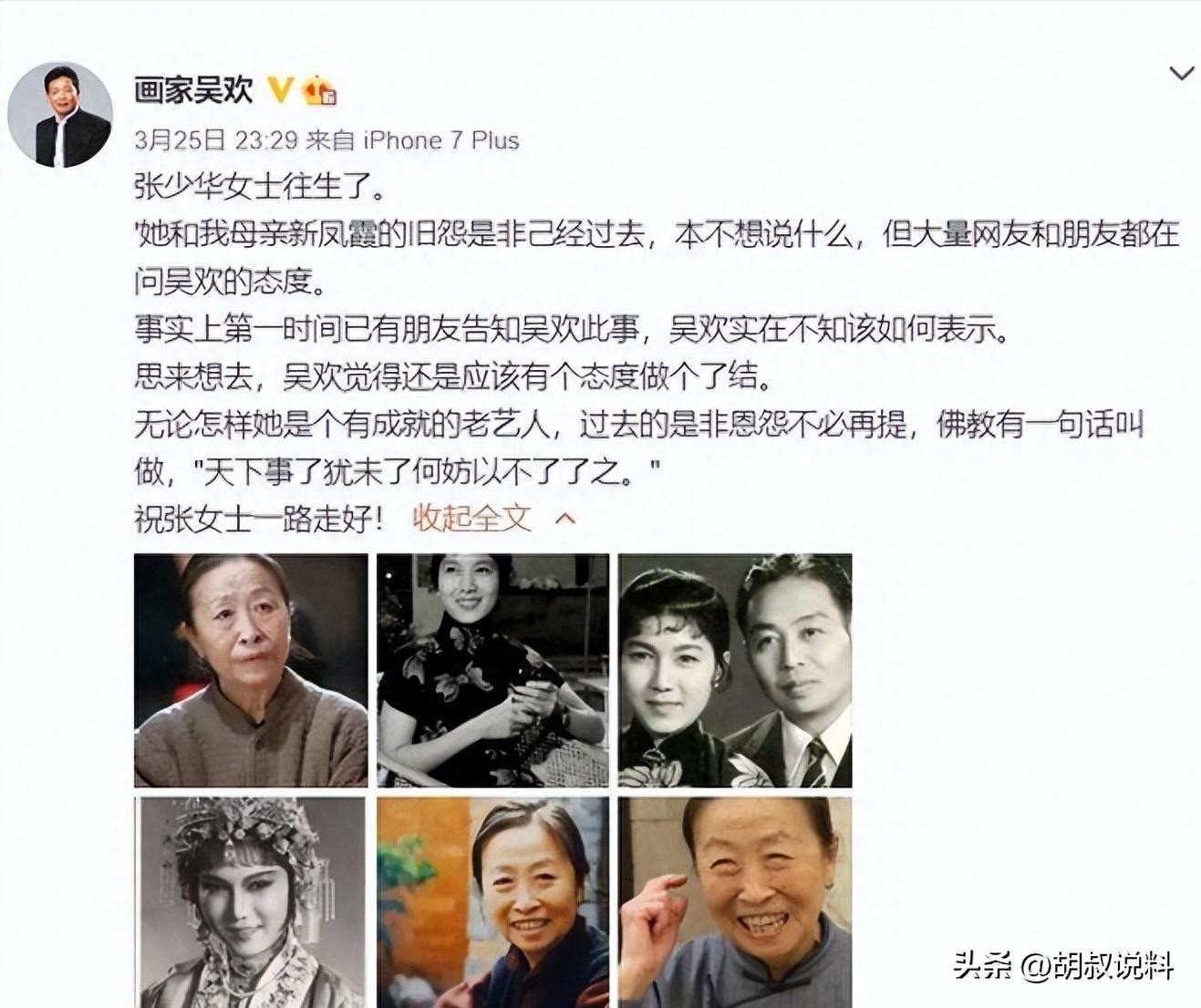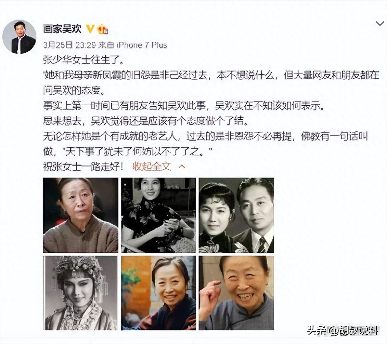 直到2021年,张少华去世,吴欢再次发文。