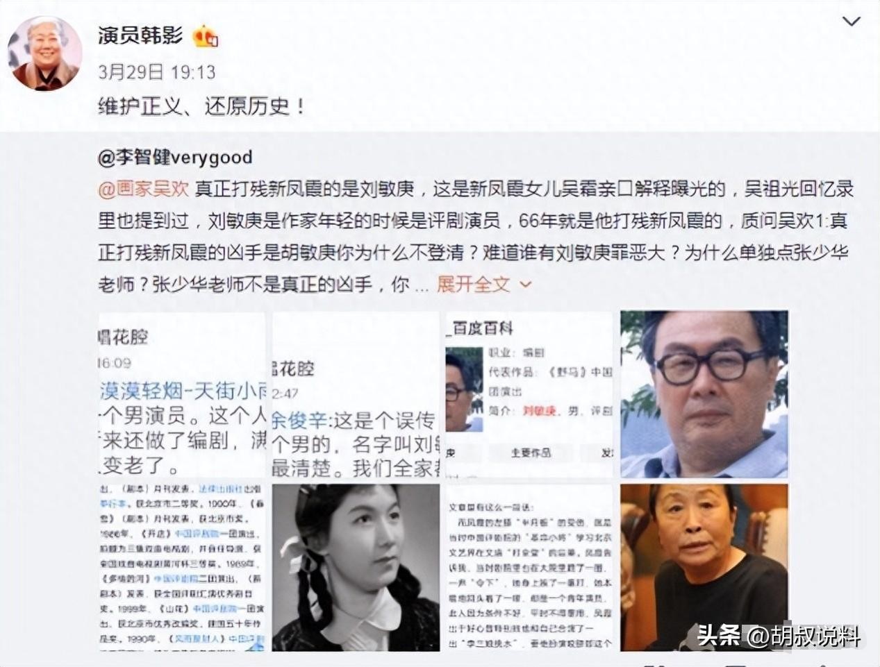 演员韩影是第一个站出来为张少华说话的人。