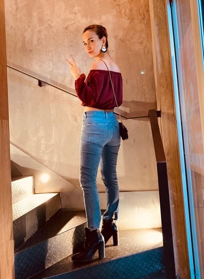 几乎卢靖姗的每一套衣服都非常的显身材,上是一件白色的露肩长袖,在众多的衣服设计当中,有一种设计是斜肩的设计。如果这件衣服是一件斜肩的衣服,感觉也会有很大的不同。搭配一件接近黑色的牛仔裤,这种裤子比较百搭,经常被人们誉为百搭之王。穿上一双低帮黑色皮鞋,看起来非常的有型,简直就是一种御姐范儿。