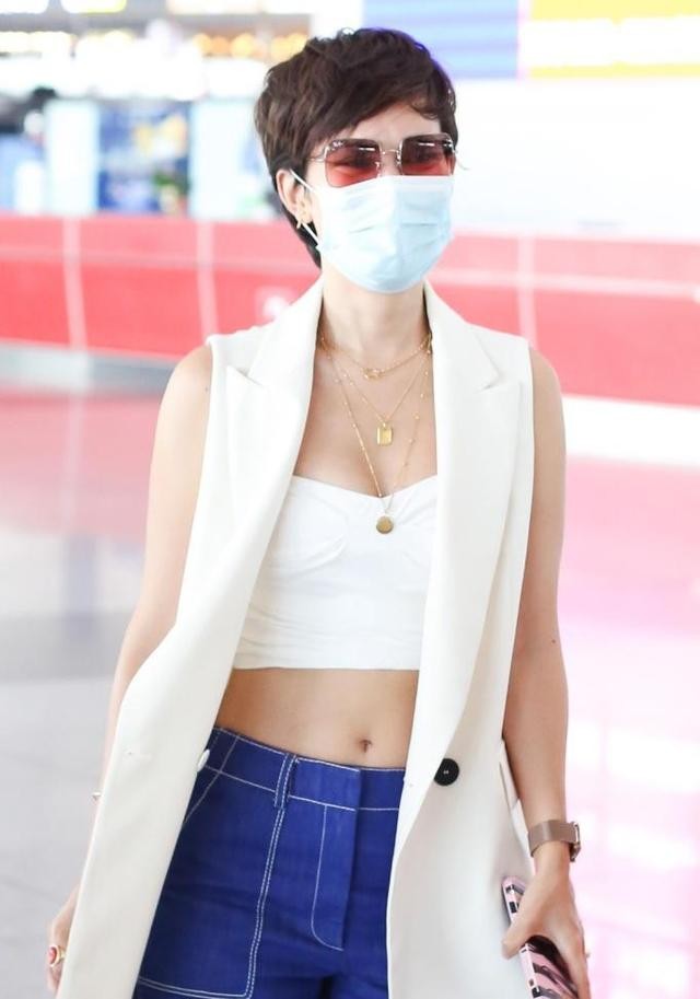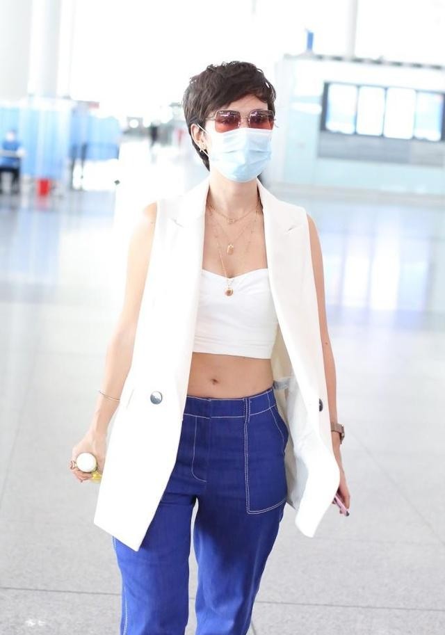 剪着一头非常干净利索的短发,戴着一个红色的墨镜,看起来非常的有范儿。因为是在疫情期间的缘故,所以出门必须佩戴口罩。里面穿了一件白色的抹胸装,而且将她的肚脐露了出来,隐隐约约还可以看得到她的马甲线,看来卢靖姗在家的时候没少健身。雪白的抹胸装与她的肤色非常接近,而且将她性感的一面展现了出来。