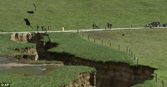 据英国《每日邮报》报道称,近日,在新西兰的一个奶牛农场,出现了一个巨大的天坑,这个天坑如同足球场一样的大小,仿佛是地壳突然裂开了一般,成一个如同裂缝一样的巨大的深坑,景象令当地人骇然。