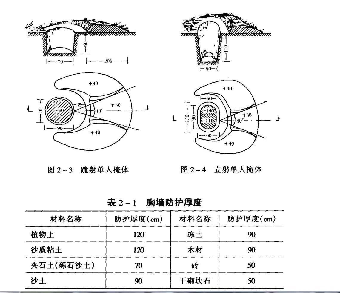 卧姿、跪姿、立姿掩体构筑图