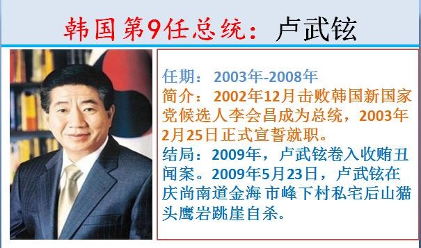 9.韩国第9任总统:卢武铉,任期: 2003年-2008年。