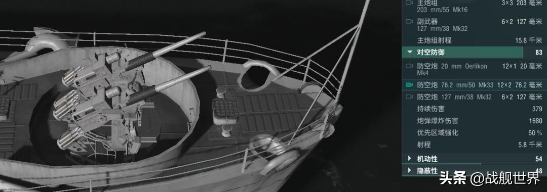 同时MK33型76mm防空炮搭配VT信管的炮弹带来了时分可怕的防空能力,这使得德梅因级重巡洋舰在防空在当时处于巅峰状态。