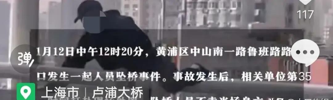 根据警方通报,1月12日下午15时许,一名男子因情绪激动从卢浦大桥上跳入桥下身亡。目击者称,现场情况惨烈,男子倒伏于桥面之上,帽子腾空而起,头部涌出大量血迹。警务人员在现场积极进行救助和调查工作,目前该事件仍在进一步调查之中。