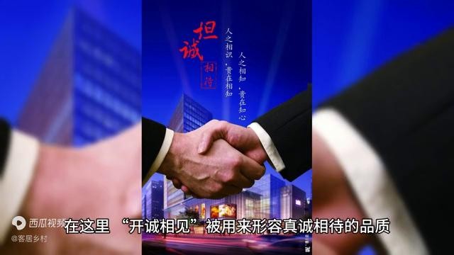 4. “开诚相见”传递了积极健康的人际交往理念,鼓励人们在相处中保持真诚坦率,从而建立更稳固和谐的关系,在现实生活中常用于倡导真诚沟通、相互理解的价值观,尤其在团队合作、朋友交往等场合。