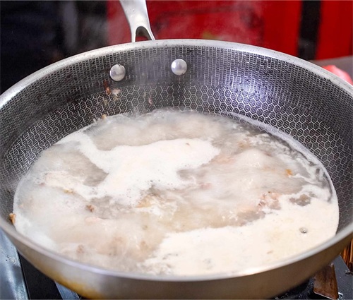 目的是为了让鱼汤呈现出奶白色,将其煮5分钟左右。