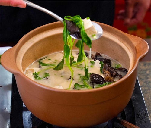 3 在放入砂锅中熬制的时候,需要注意火候的变化和调整,尤其是放配菜的时间,一定要配合好整体熬制的流程,不能随意乱放,将美味流散,这样才能保证这道汤的美味。