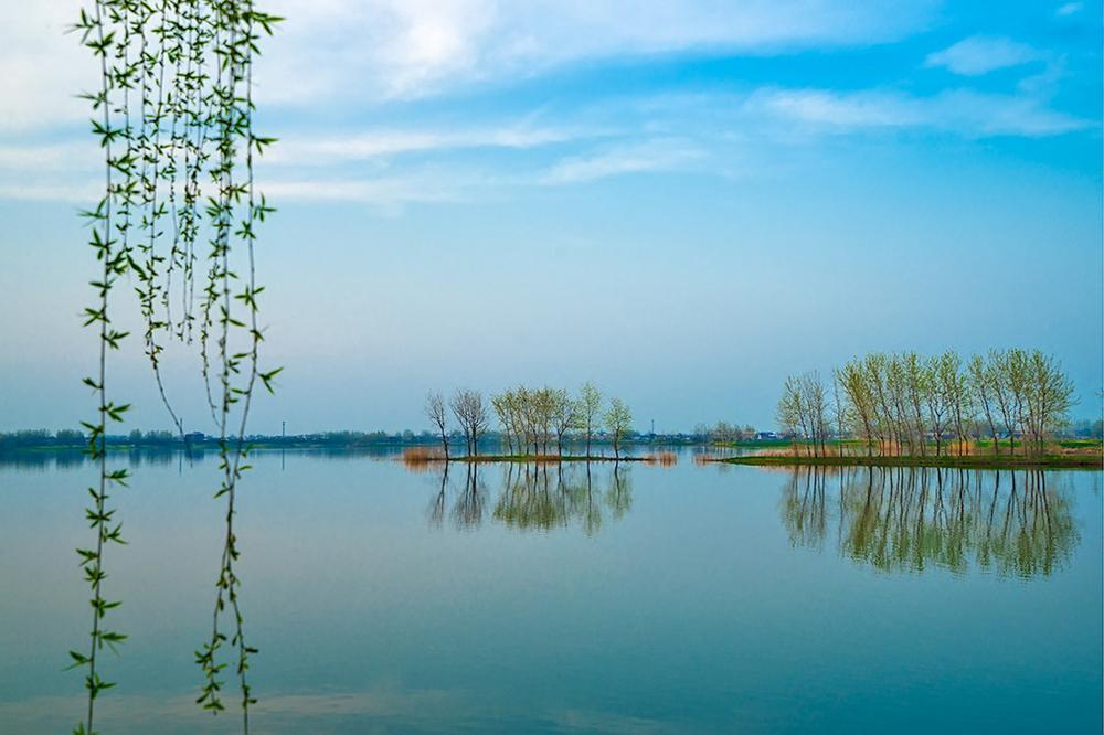 八里河风景区,位于安徽阜阳东南颍上县境内,南临淮河,东边是颍河,是国家5A级旅游景区,环保全球五百佳,自然生态完整,景区内以世界风光、锦绣中华、鸟语林等为主,其中鸟语林占地三千六百亩,被誉为“天下第一农民公园”。