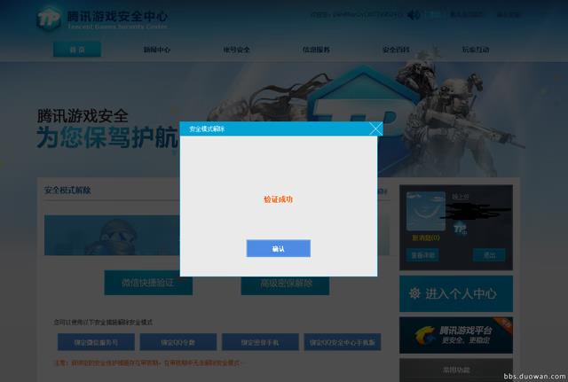 5、点击“密保手机”,弹出密保手机验证框,验证成功,即可解除游戏号安全模式。