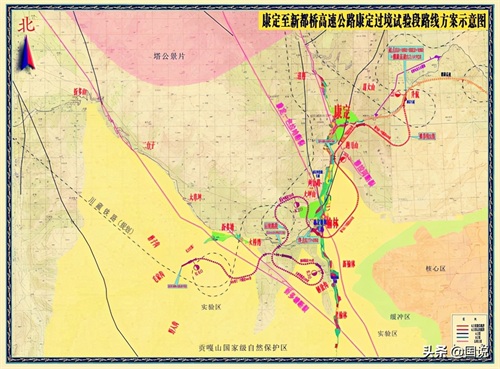 康定过境段是海拔落差较大的一个阶梯,短短直线20多公里需要爬坡1000多米,线路设计需要多个回旋路线,而回旋段几乎都需要连续修建多条隧道来完成,其中跑马山1和2号隧道就长达16公里,进口和出口落差达220米,而榆林立交又是对接318国道和川藏高速折多山26公里的隧道,根据最新的建设情况,该过境有望2022年建成。