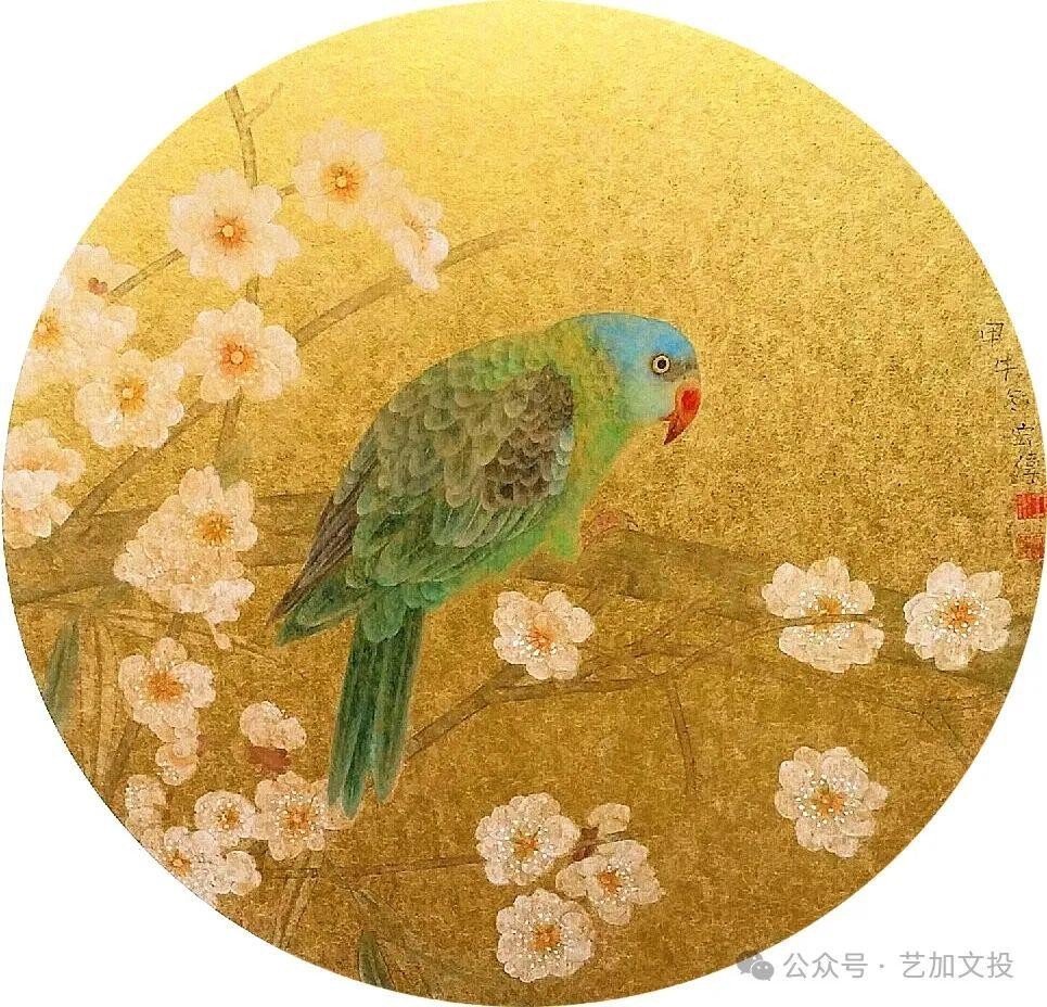 第一次欣赏江宏伟作品的人,大凡会有这样的感慨:这是宋人的画吗?!作为花鸟画家,江宏伟的作品普遍具有着精细而朦胧的特质,这一对似乎对立的特质,在画家这里有着和谐的统一。精细源于其作品有着无惧时间流逝的凝视之感,细微处的每一笔一划都慎重严格,精工而无匠气,生动灵巧。他曾说:“一瓣瓣花叶的勾描,一片片羽翼的渲染,让我处于纯粹社会的空白状态,空白到麻木的境地,思维停滞了,各种欲望回到睡眠之中……”这种精细和对艺术纯粹的追求,似乎将画家带到了出离于时间的梦幻之境。而宋画之所以成为宋画,除了画家和主题外,其今日所呈现的古雅效果,正是时间所赋予的历史感。江宏伟画作的灰暗朦胧效果,当是他将墨色在各自浓淡碰撞中交相融合后的独特效果。