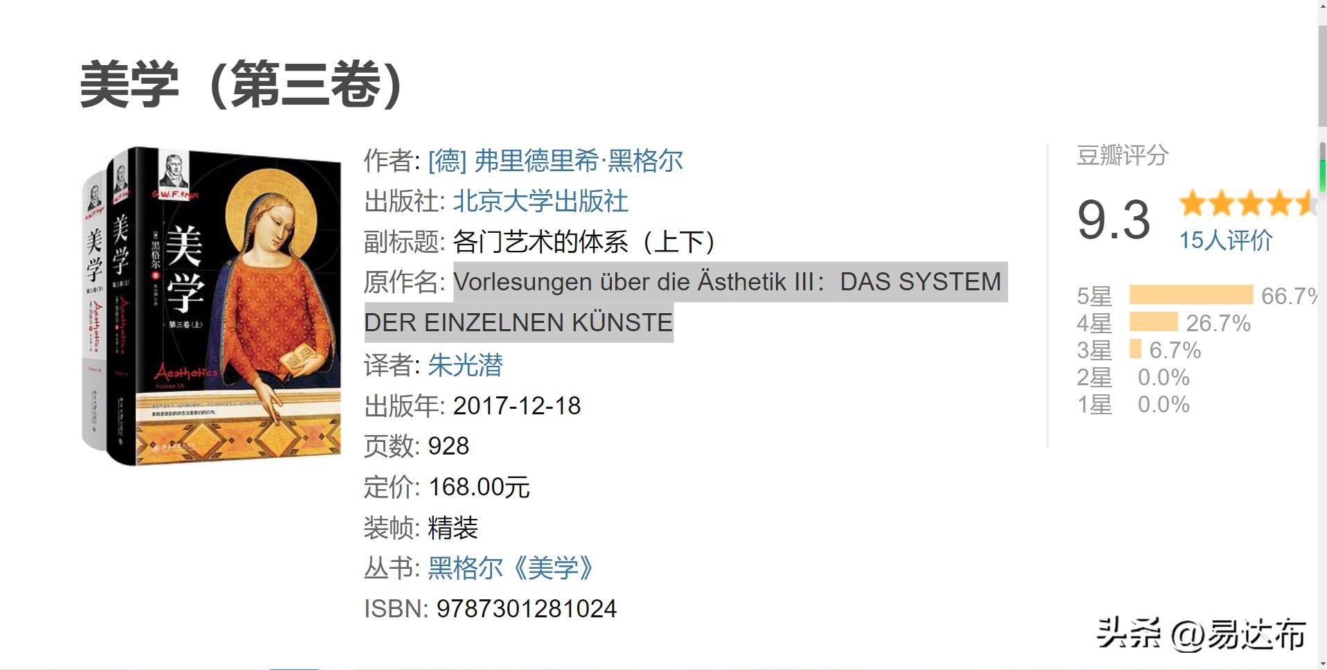门外汉的我表示全称都很难拼出来。只看懂了system是体系的意思,感觉自己还是小学生水平。还有很大的进步空间。更不用提其中的内容了。einzelnen一直被我翻译成部门或者引擎(看来英文水平有待提升)。之前将其翻译成《部门体系要讲德:大道至简》,以为是管理学类的书籍,没想到是关于美学。einzelnen搜索后发现是单个,单独的意思。