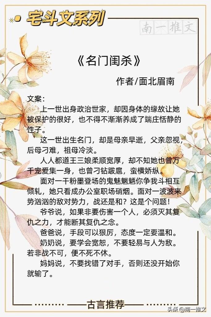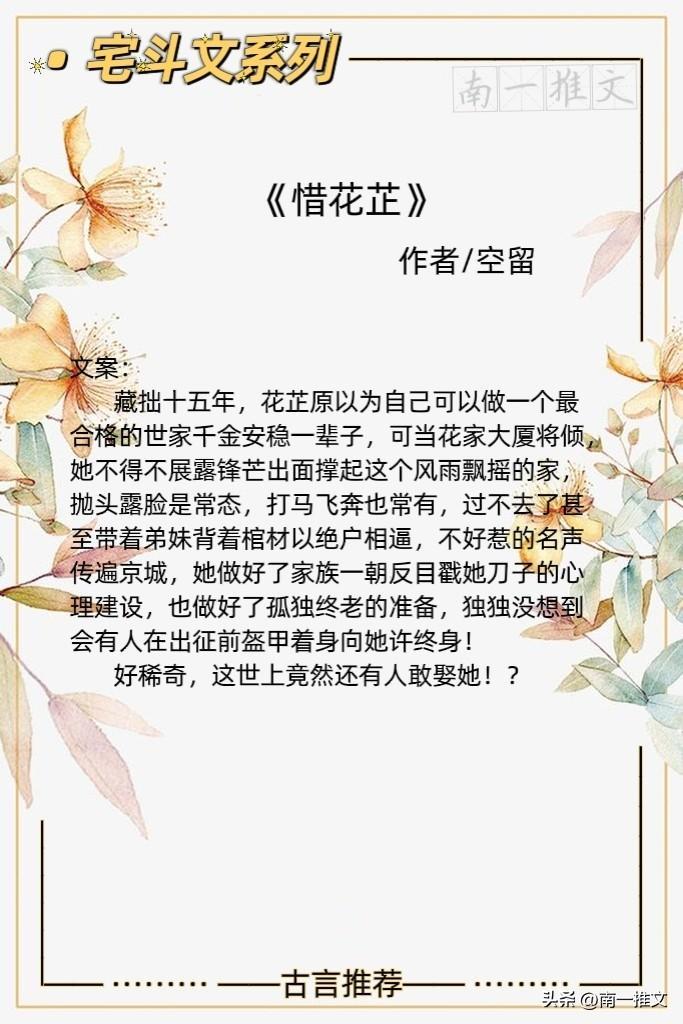 大家好,我是南一。本期推荐5本古色古香的经典宅斗文,虽宅斗,但不拘于深宅后院,看机智谋略不输男儿的佳人如何拿回属于自己的锦绣繁华。