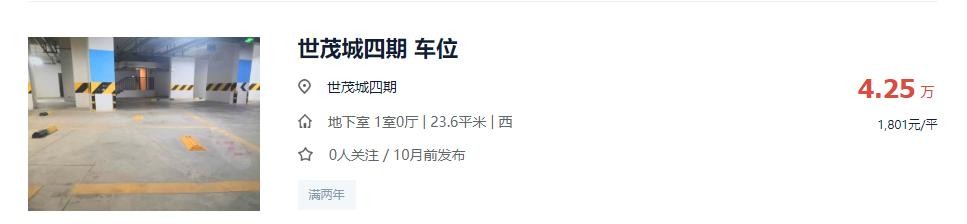 但一些定位刚需的小区,如世茂城23.6㎡的车位仅仅挂牌4.25万,还卖了10个月都未成交。