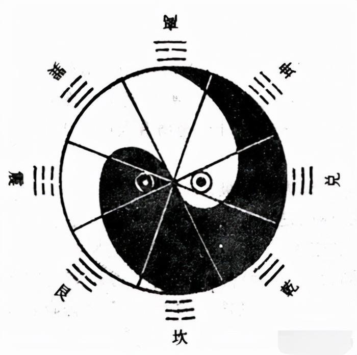 古太极图为清朝胡渭据明赵仲全《道学正宗》的《天地自然之图》而制,该图与《天地自然之图》无异,唯一的区别是黑白环互的圆周划分为八块,以象征八卦。