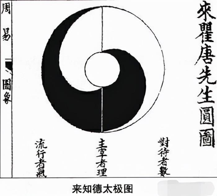 来氏太极图作于明代,来知德潜居蜀地深山参研易理达29年,著有《周易集注》一书,来氏太极图为黑白环互图,黑者阴,白者阳。阴者可分为二,即太阴、少阴;阳者也可分为二,即太阳、少阳。中央还有一圆,据来氏讲:“非中间一圈,乃太极之本体。”