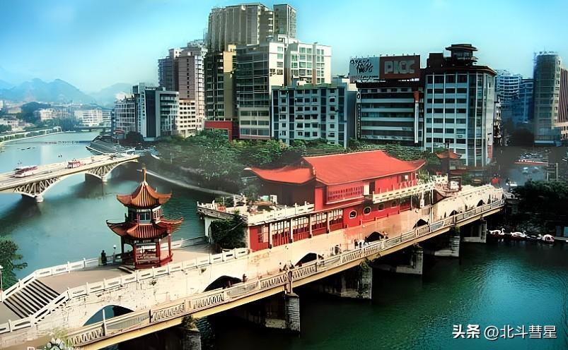 百子桥,又称唐家桥,始建于乾隆年间,位于剑江之上,全长一百四十米,宽为八米,是一座拥有两百多年历史的七孔石拱桥,系都匀的龙头桥,被誉为“众桥之首”。