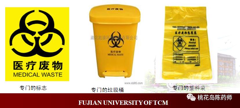 医疗废物有专门的标志,而且必须用专用的物品或容器来装。