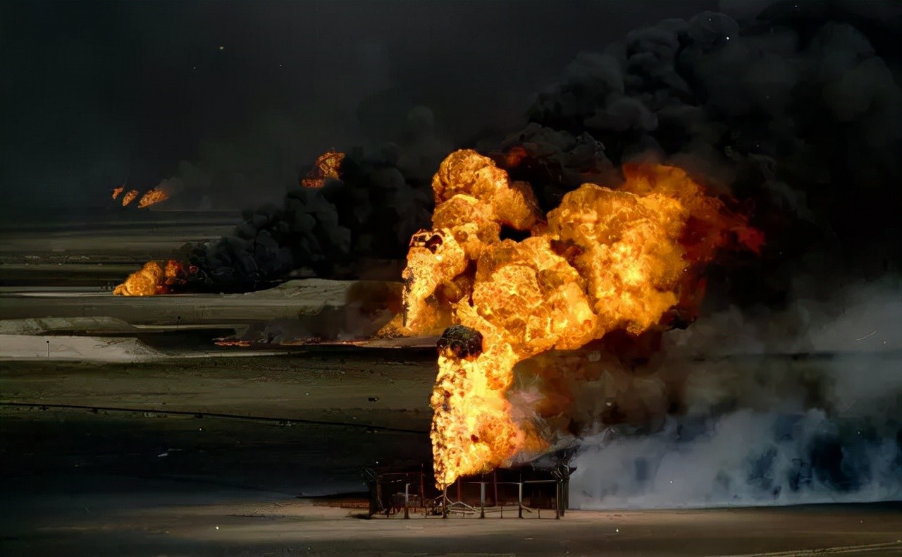1991年3月10日,巨大的火焰冲油井中喷涌而出,数百个科威特油井在短短几日内被伊军士兵纵火焚烧。(Greg Gibson / AP)