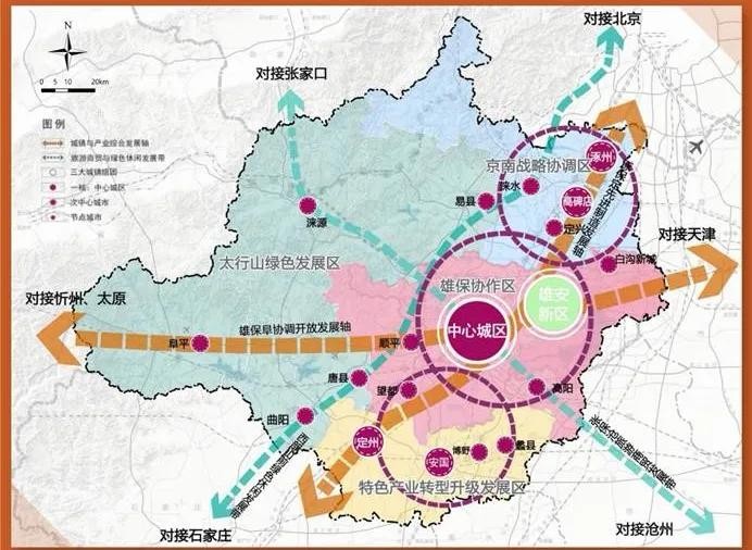 雄安新区设计之初,保定与雄安新区定位“统筹、协调、融合、错位、一体化”发展。现在明确“京雄保一体化”,从中也能看出其中端倪。