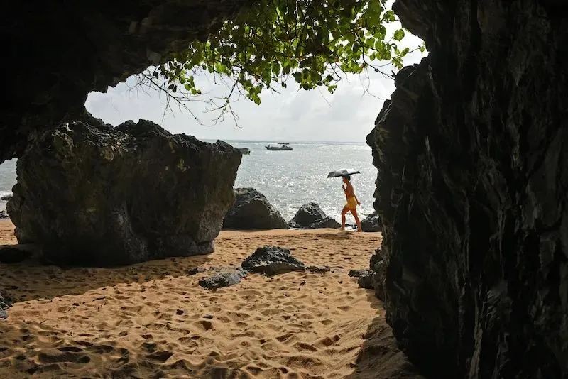 9)山钦湾:免门票;一半碧绿,一半湛蓝,最为突出的是嶙峋怪石,更有燕子洞奇观,最近这两年突然红得出圈。