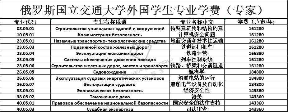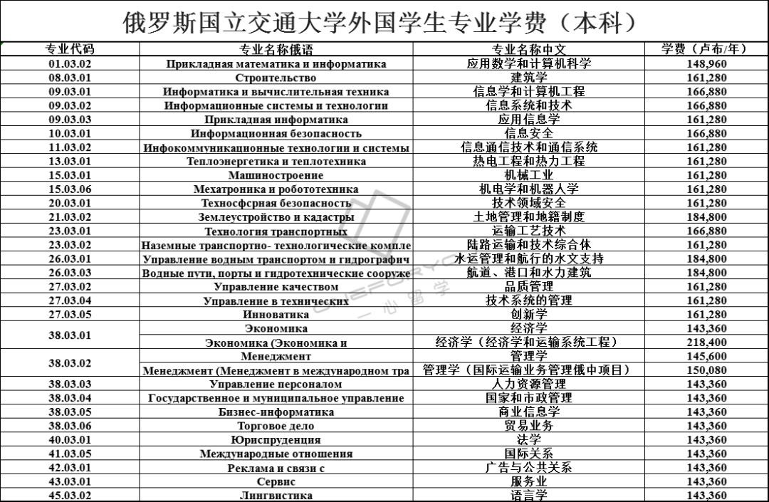 【学校推荐】俄罗斯国立交通大学(专业及学费)