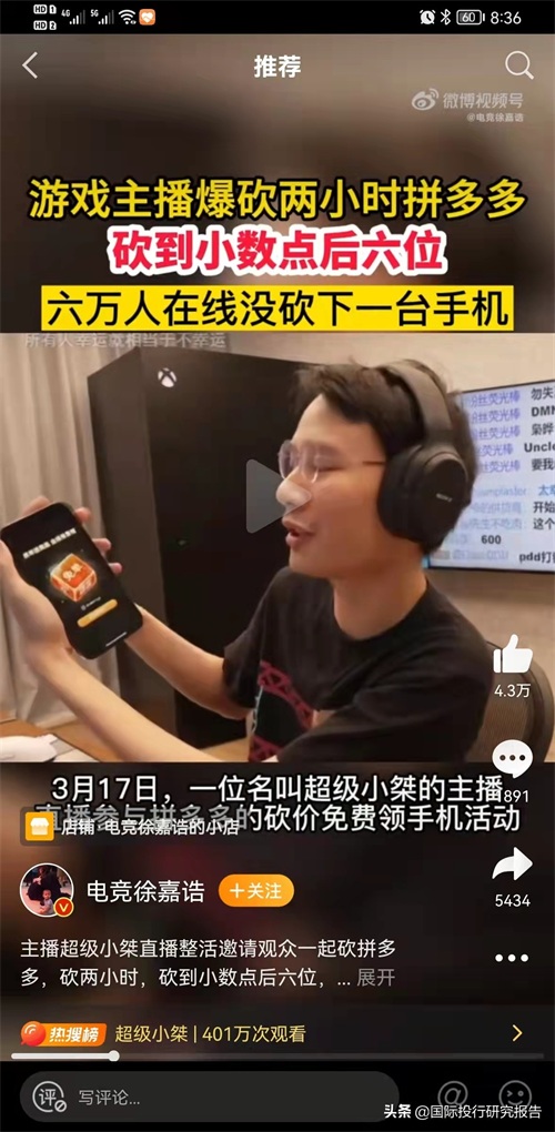 一位主播动员自己的几万粉丝在拼多多砍一台手机,却砍不下来,这揭穿了拼多多砍一刀的骗局。