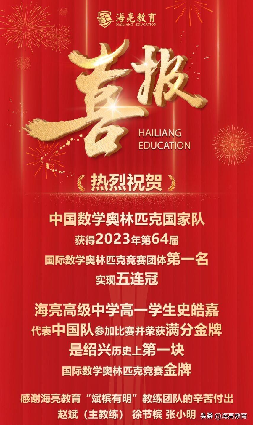 就竞赛而言,在短短几年时间里,海亮高级中学实现了学科竞赛“1国际金牌,奥赛16金8银1铜”的跨越式发展,迅速进入浙江省第一梯队。2023年7月,史皓嘉同学荣膺第64届国际数学奥林匹克竞赛(IMO)满分金牌,是绍兴历史上第一块国际数学奥林匹克竞赛金牌。