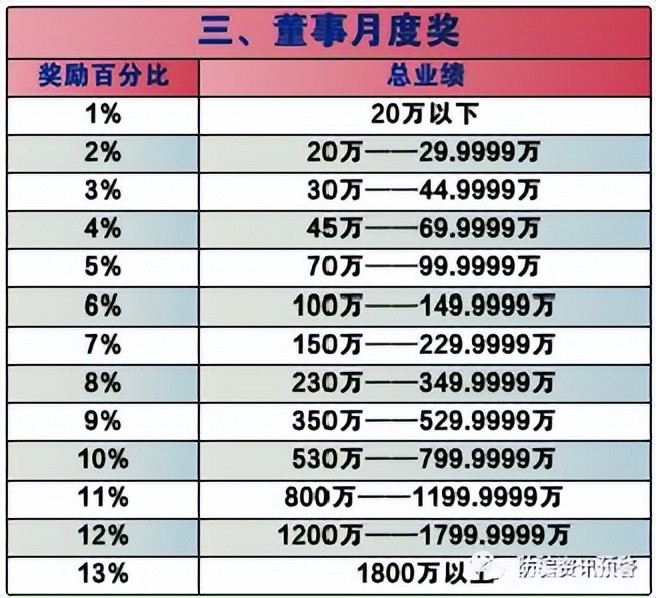 三、董事业绩月度奖,根据团队总业绩进行奖励: