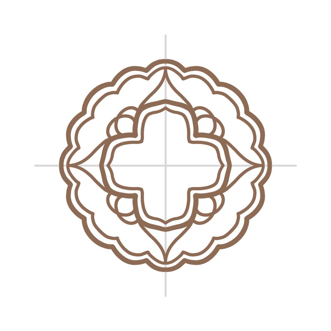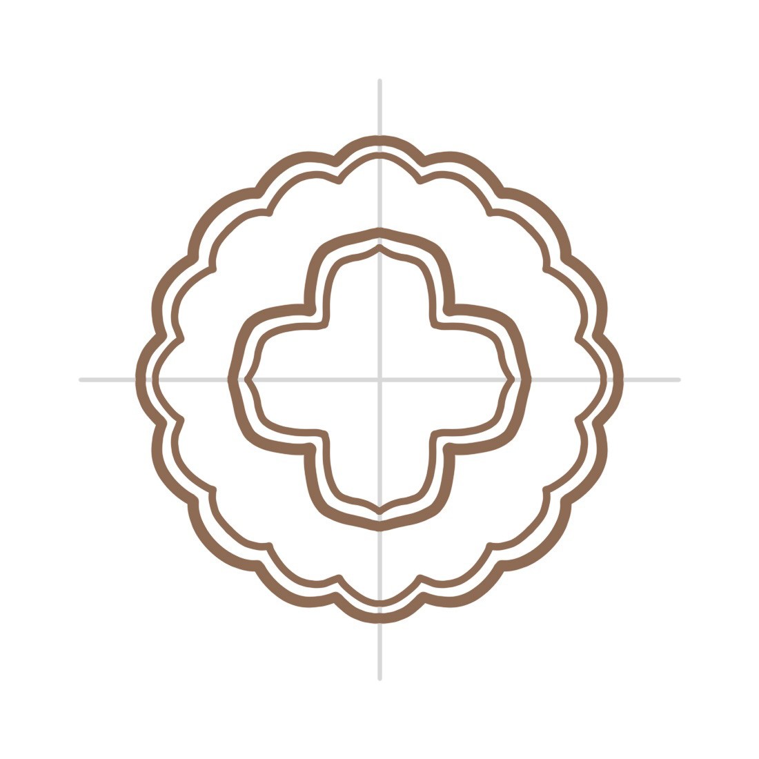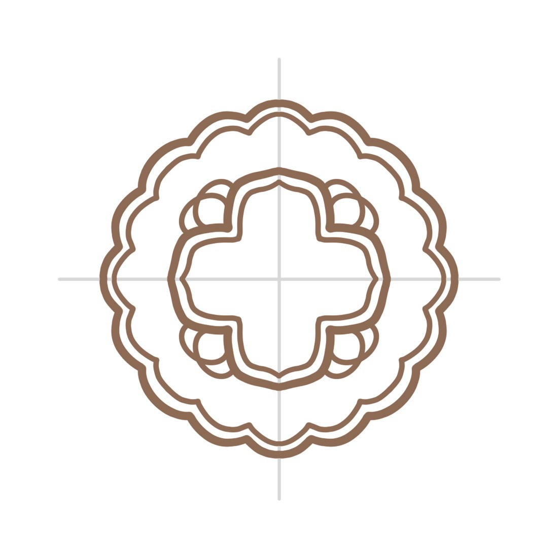 002、以中心点为参考画出十字,因为月饼是圆形的,这个十字后面都是可以作参考的,在中间一点的地方画出更大一点的弧线,弧线外面连接的点可以稍微往上翘;