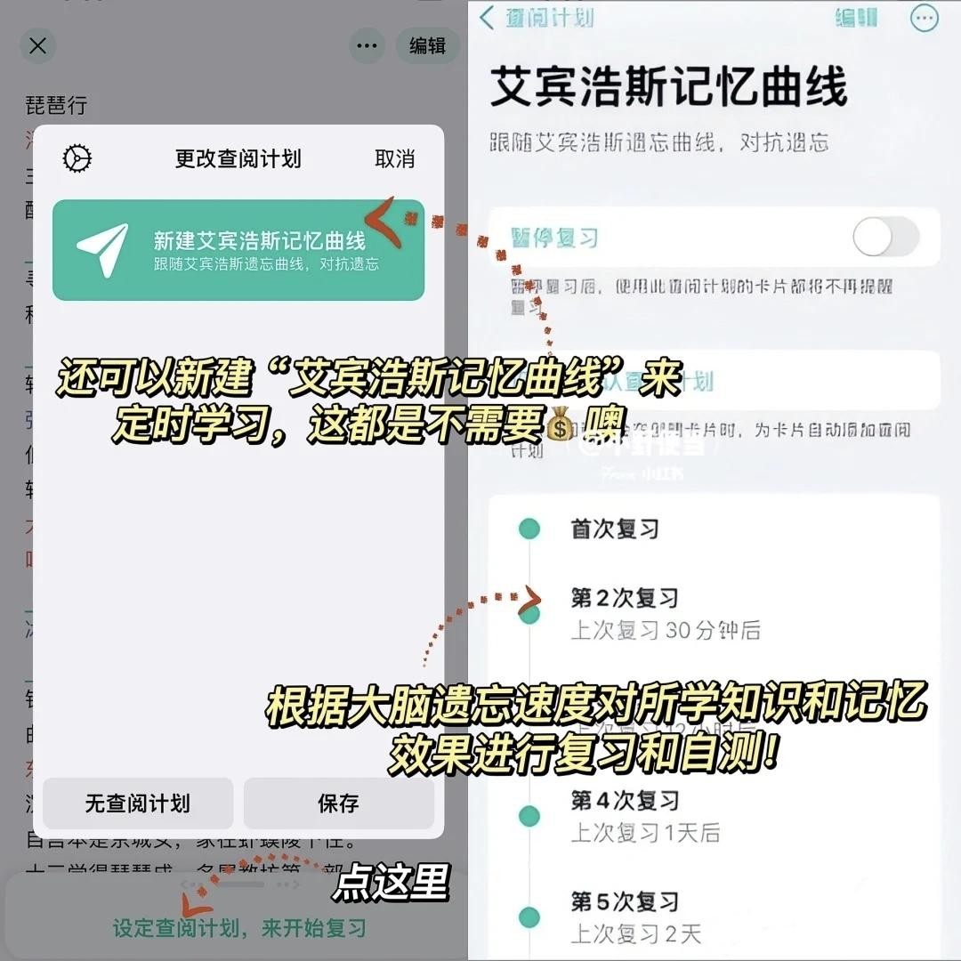 各个年级阶段都可用,可以选择任意段落挖空,进行反复背诵,支持文本、图片、PDF、扫描等方式一键导入背诵内容,还可以添加艾宾浩斯记忆曲线来定时学习,根据大脑遗忘时间来科学定时提醒我们进行复习巩固