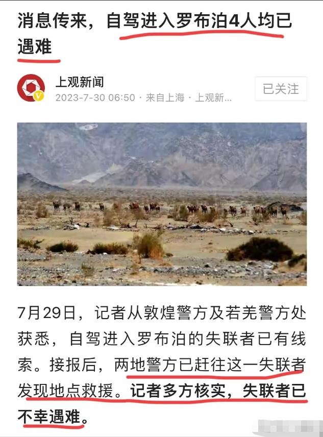 我们再回到罗布泊这起悲剧事件,这起事件,唯一的意义,就是让罗布泊无人区多了几个亡灵!他们是挑战大自然的“勇士”!