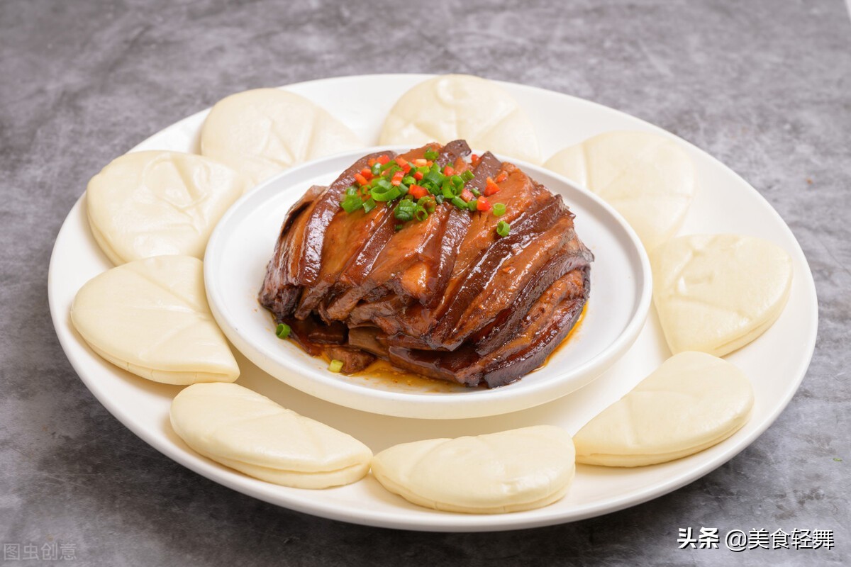 酱梅肉荷叶饼也是我们山西传统名菜,属于晋中菜,是晋商庄菜的代表菜,称为晋式第三蒸,酱豆腐汁和五花肉相蒸,去腥去腻而得名。在一起只有过年或是宴席上才能吃到,现在随时想吃,自己在家或是饭店都有的卖,我不喜欢吃肥肉,但是母亲做好的酱梅肉,我是百吃不厌,把酱梅肉夹在馒头或是荷叶饼中,那是一个吃得欢快。酱梅肉荷叶饼是进了晋中八碗八碟宴席中的,它是用煮至5-6成熟的白肉加入酱豆腐蒸制而成,此菜肉质色泽嫣红粉嫩,入口浓香酥烂,肥而不腻,保证吃过之后让你回味,总会想到它。